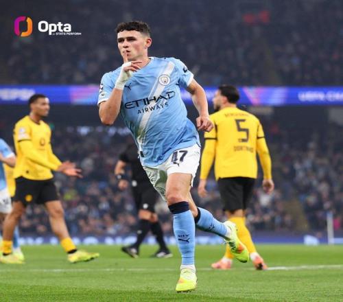 此役主场对阵多特蒙德,福登在比赛第22分钟禁区外兜射破门。