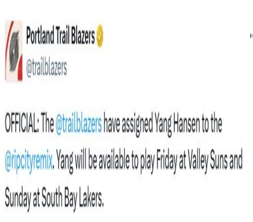 此前,开拓者队记Richman曾预计瀚森可能会在12月2日至11日期间被下放——这段时间混音队将在主场连续出战5场,无需长途旅行,球队管理层和教练组能近距离观察他的表现,他也能在短时间内积累大量比赛经验。